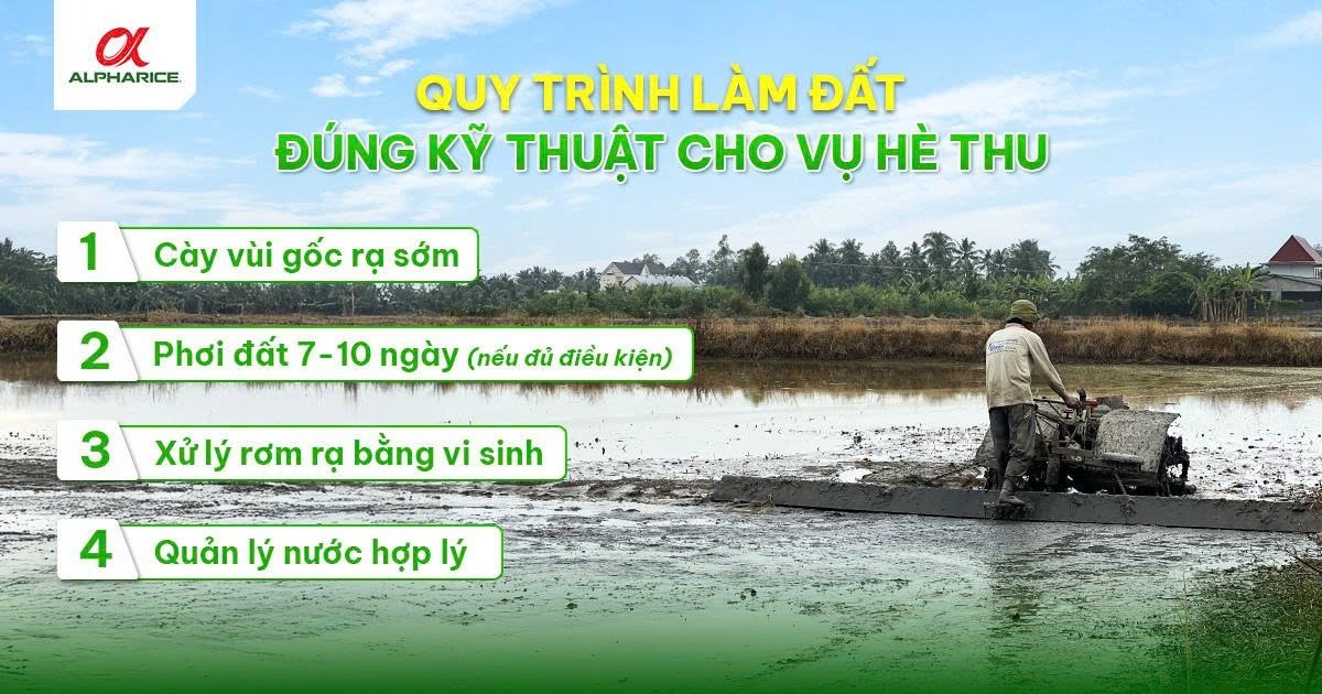 Trong canh tác lúa Hè Thu, làm đất không chỉ là bước chuẩn bị mà là nền tảng quyết định hiệu quả toàn bộ vụ sản xuất. Khi đất được xử lý đúng kỹ thuật, bộ rễ sẽ phát triển khỏe, cây lúa sinh trưởng ổn định và tối ưu hóa khả năng hấp thu dinh dưỡng.