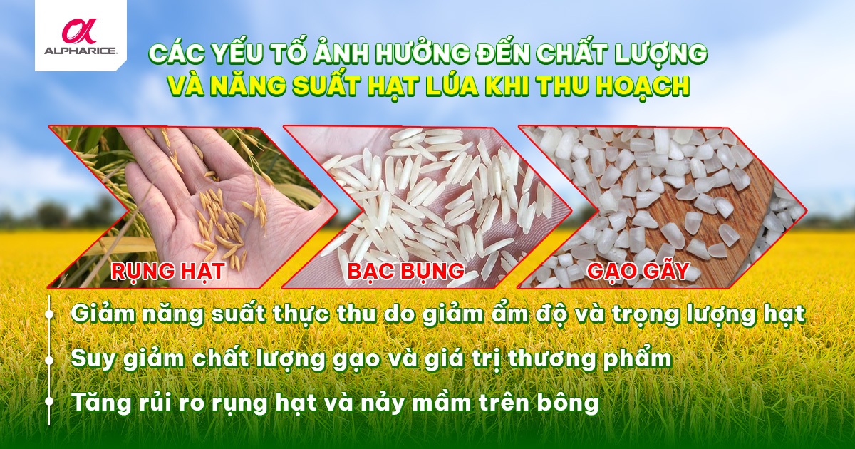 Hình 3. Các yếu tố ảnh hưởng đến chất lượng & năng suất hạt lúa khi thu hoạch
