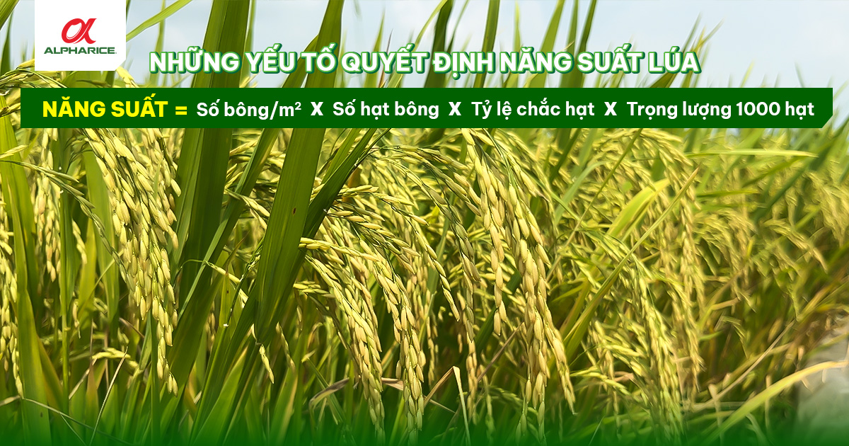 Năng suất = Số bông/m² × Số hạt/bông × Tỷ lệ hạt chắc × Trọng lượng 1000 hạt